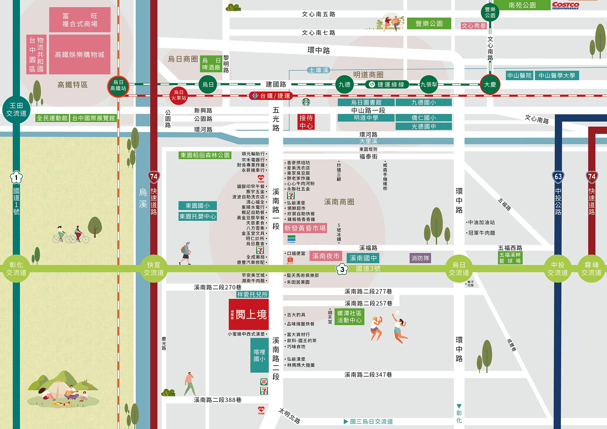 FEATURE享受高鐵特區的光輝未來,在離塵不離城的生活環境中,實踐北歐幸福哲學,平衡中尋找滿足感的生活態度,從家出發,掌握國1、國3、台74線、台63線、環中路、高鐵、捷運,穿梭城市快速通勤,享受美好生活沒有界線。由七期豪宅團隊寫下烏日溪南特區頂尖建築,千坪基地、雙塔建築、純住零店面,2~3房傲享最磅礡的天際線,在家享受動靜皆俱的全齡公設。