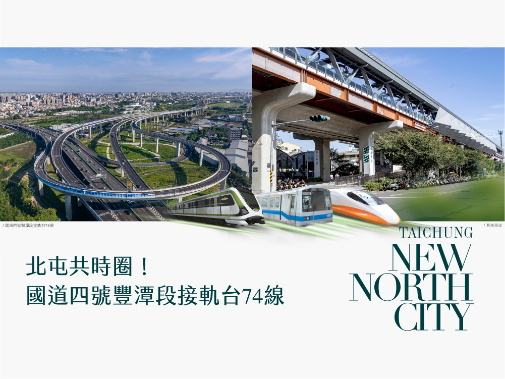 FEATURE▎ 豐原極速軸心,國道四號豐原潭子段通車,串聯15分鐘大北屯生活圈;台鐵栗林站車程約3~5分鐘,輕鬆轉乘雙鐵共構松竹站,軌道國道便捷加速。
